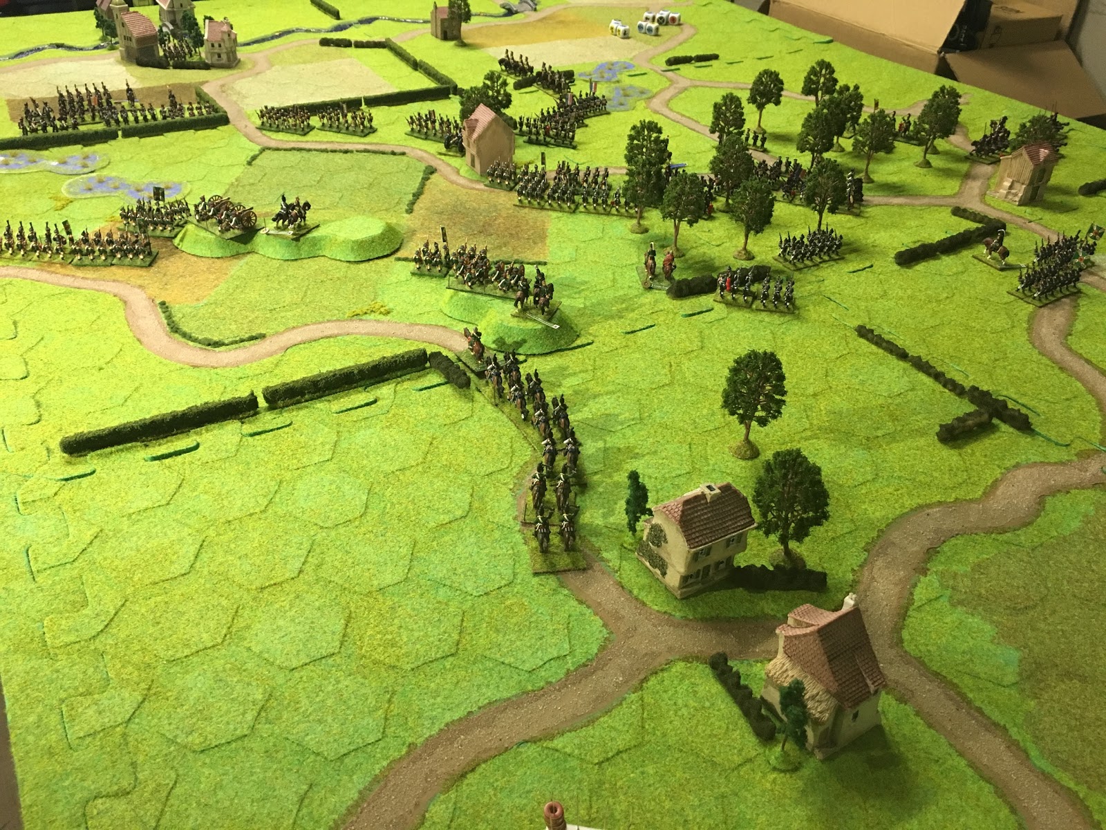 Ostermann’s Corps consolidates its’ crucial position in the French centre. The Hussars finally rally at the top of the photo.