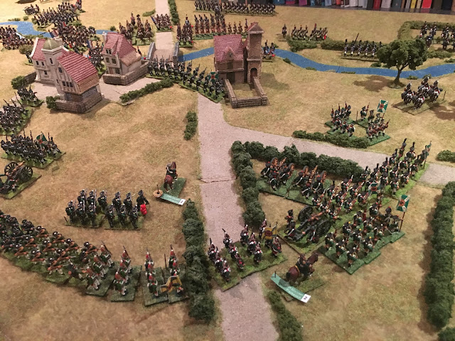 Meanwhile the French left flank is under seige. One of Guilleminot's battalions routes across the bridge and Lecch's italians try and fill the void.